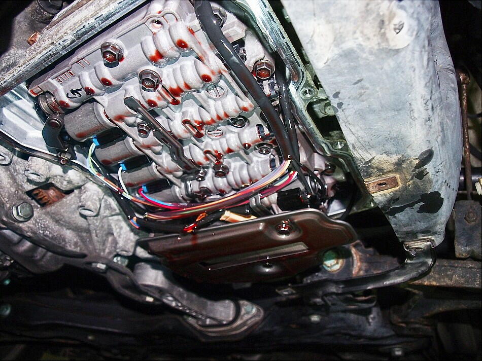 バルブボディが姿を現す。 ソレノイドバルブ、センサーの塊り。 メカメカしくて、見入ってしまう 。 酒好きなら、肴になる( 笑