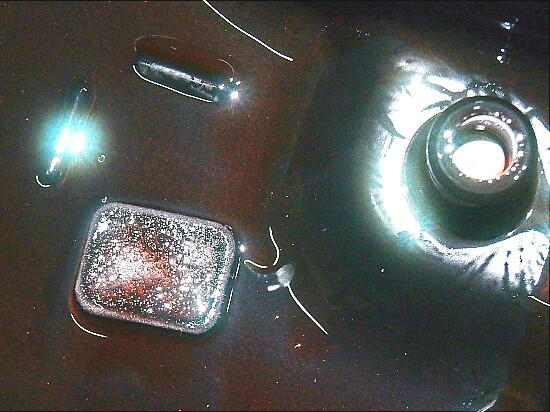 | ドレン、点検プラグと、オーバーフローパイプを外してオイルを抜き、オイルパンと反対側をジャッキアップして傾いた状態で一晩放置。 これで、どれだけのATFが抜けたのだろうか。 見て、重量を測って見た所、1.5L程しか抜けていない。 オイルパンを叩いて反響音を聞いてみると ..... 未だ抜けきっていない。 これは、オイルパンの構造に問題が有りそうだ。