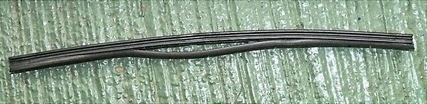 ワイパーアームにセットして、リアガラスとの密着度を見るが、隙間無し。 旨く行った。 R32用のブレードは600mmなので、予備のゴムも出来た。