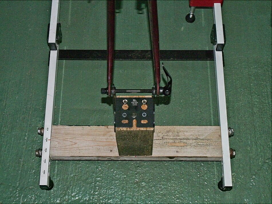 そこで、室内トレーニングに切り替える。 ローラー台はバランスを取る為に手首に負荷が掛かる。なので、フロントフォークを固定する。