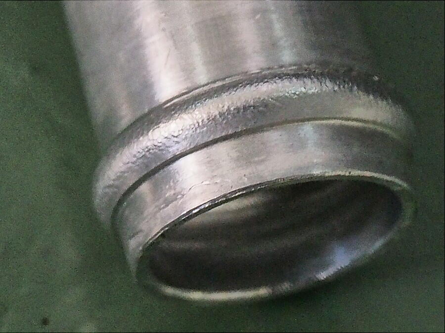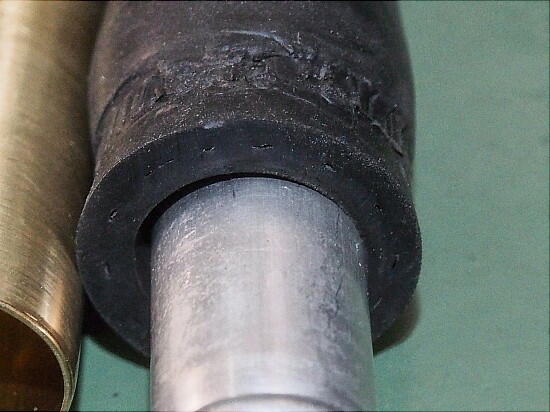 ジョイントパイプの径が細かったのか ? いやいや、パイプ内径 Φ16mmに対して、リップ部径 Φ18mm( リップ無し部Φ16mm )のジョイントを使用しているので問題は ない筈だし、これまでも使ってきたが漏れは無かった。 今回使用したジョイントは、使いまわしでは無く新品にしていたし ..... じっくり ジョイントパイプを見る。 変形は無い。 だが、リップ部を見ると、加工の際発生した転位が見える。 この状態が酷い。 ゴツゴツと転位のスジが感じ取れる状態。 これじゃ、このスジを通って漏れ出た訳だ。