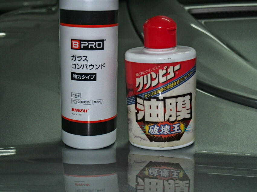 | もうねえ ガラスコーティングは絶対にやらない。 夜間&雨 時 コーティング = 油膜 としか思えない、ギラツキ。 取り去るのも、結構大変な作業となる。 今の所、下写真の右側を使っていたのだが、コーティング、油膜、水垢 を落とすには 力と時間が掛かり、作業が辛くなった。 塗って、軽く擦って、洗い流して終了 の製品は無いのか ? で、検索すると、色々と出てくる。 価格も、ピンキリで、価格が高い = 性能が良い とは限らないと思い、全くの予想で適度な物を購入してみた。 それが左の商品。 広告通りの性能で有れば良いのだが .......