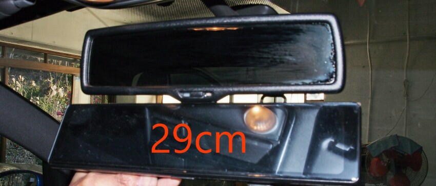 何方も、 使いたいとの要望が無かったので、私が貰い受けた。( 有難うございます ! ゴルフは純正ミラーのまま。 純正ミラーは、デカイ割には後方視界が狭く悪い。 まあ、エリではデカクても、ゴルフには合うだろう。 と、思いミラー同士を重ねて見たが、 ......... デカイ ! ( 笑 前方視界( 特に左側 )に、問題ありそうな予感。