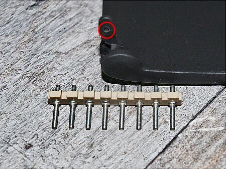 ピンを探すが無い。 丁度代替ピンとして合致する物が有った。 センサー用に使用するコネクタピンを使う。 しかし、ピンを差し込んだ途端、灰皿側の受け穴部が欠けてしまった。 ( 脆い 接着で修正して、ピンを通す。