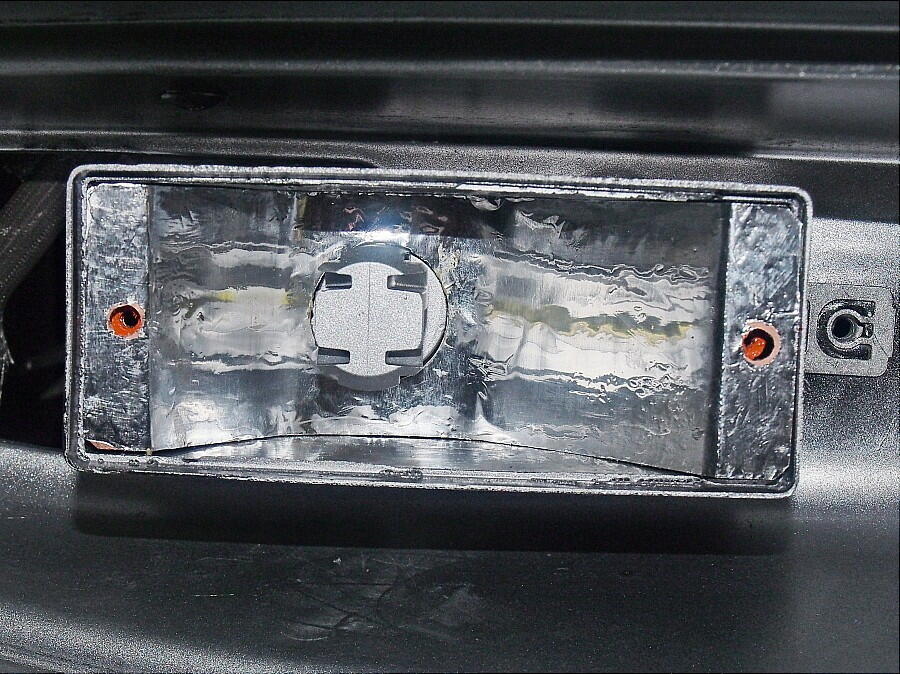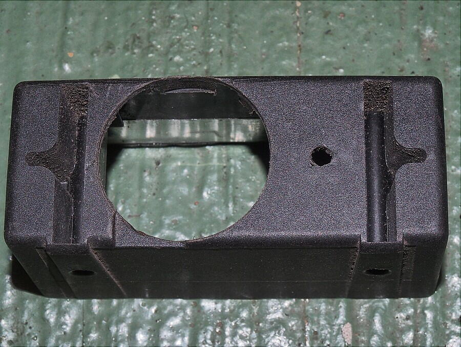 純正のバックライトのケースは残してある。 これを使うかね。 H4球を実装するので、既存の取付穴は使えない。 熱気抜きの穴が開いているので、この部分に実装させる。