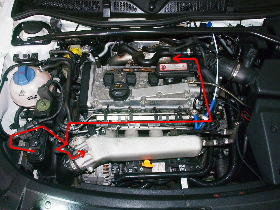 キャニスターから、戻す箇所が二つ有る。 スロットル側は解るが、ダーボの吸気側にも戻している。 長い吸気菅を経て結局は