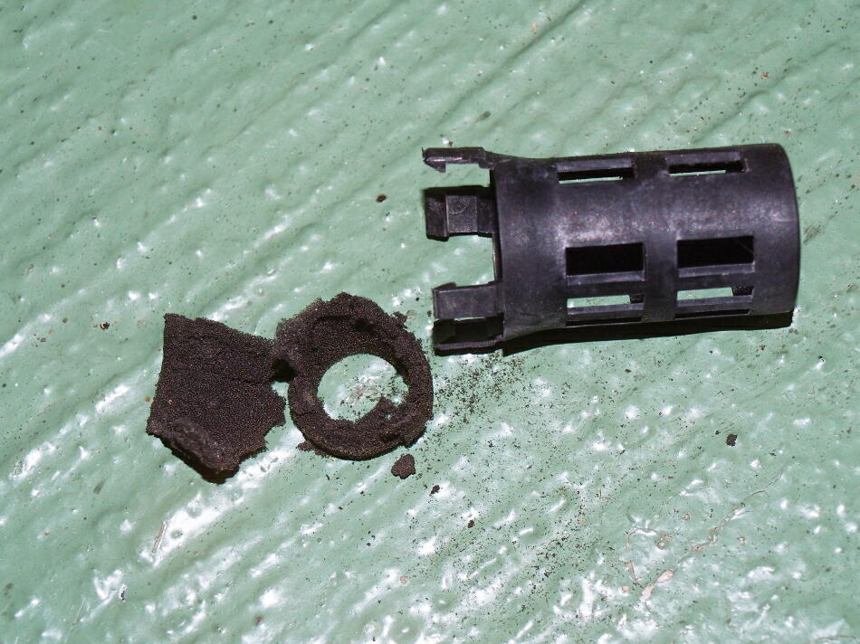 どうせパージだし、こんな部品は売ってないので、スポンジカスを撤去し、筐体だけ装着して終了。