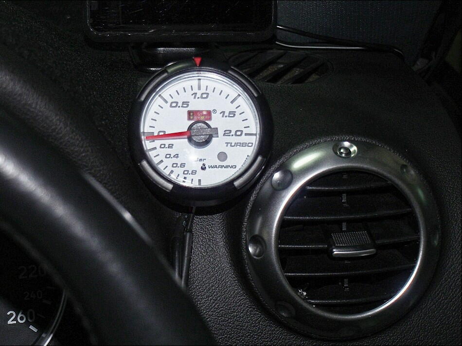 実際に走行すると、2000rpm辺りから、正圧が掛かっている感じがする。 常時VCDSを繋いで置く訳にも行かないし、上記の 測定が正しいとも言えない。 そこで、面倒だが ブースト計を取り付けて見ることにした。 ( 燃費を上げる走行の仕方を探る目安にもなるが、そもそもターボ車を 選んだ意味はない ( 笑