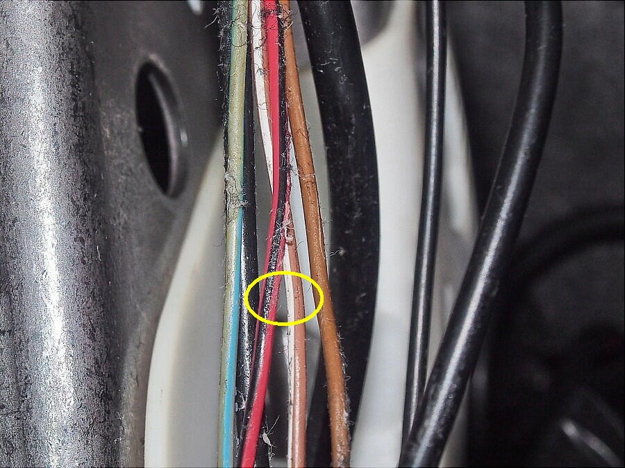 配線を通す作業に移る。 下写真の黄色線で示す所しかない。
