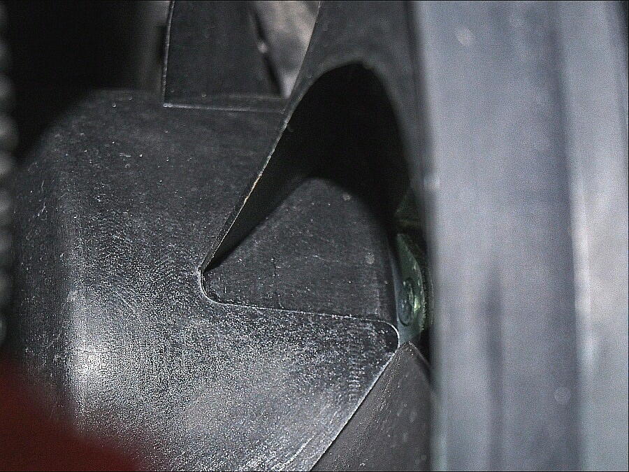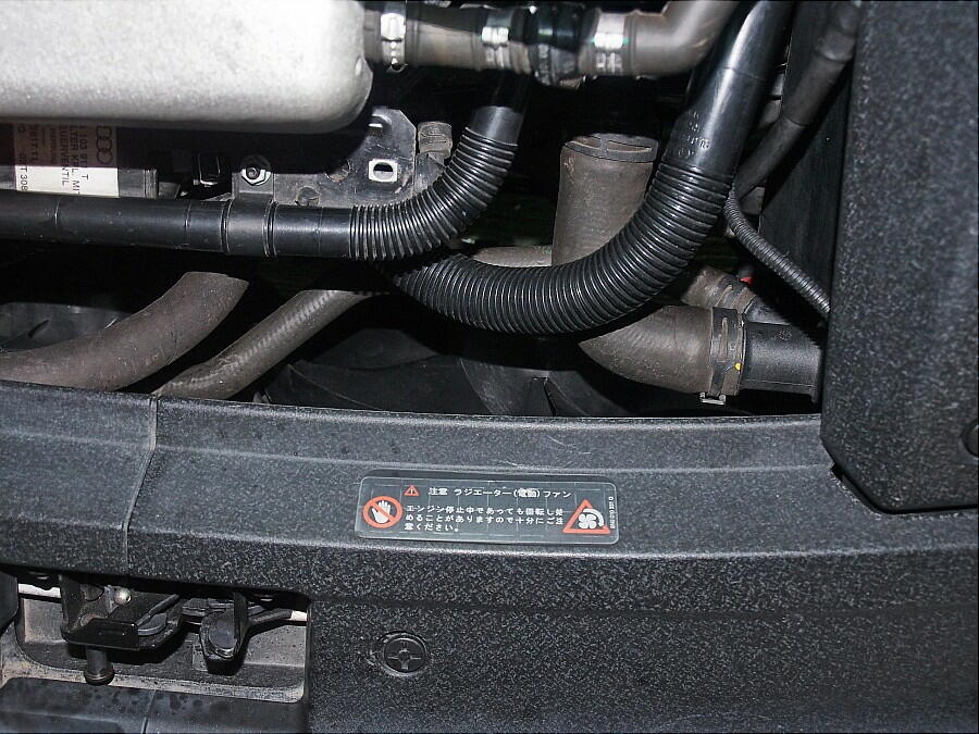 | 一ヶ月前だったろうか、ファンが回ると ギャリギャリと擦れる音が発生した。 それも、歩行人が振りむく程の音量でだ。 原因は、ファンのブレードを固定する中心のボルトが緩んでいて、ファンが回ると偏心し、外枠に当たっていた。 これは、車検整備時にファンが回らず、ファン一体毎交換した時点での締め付け不良と推測する。