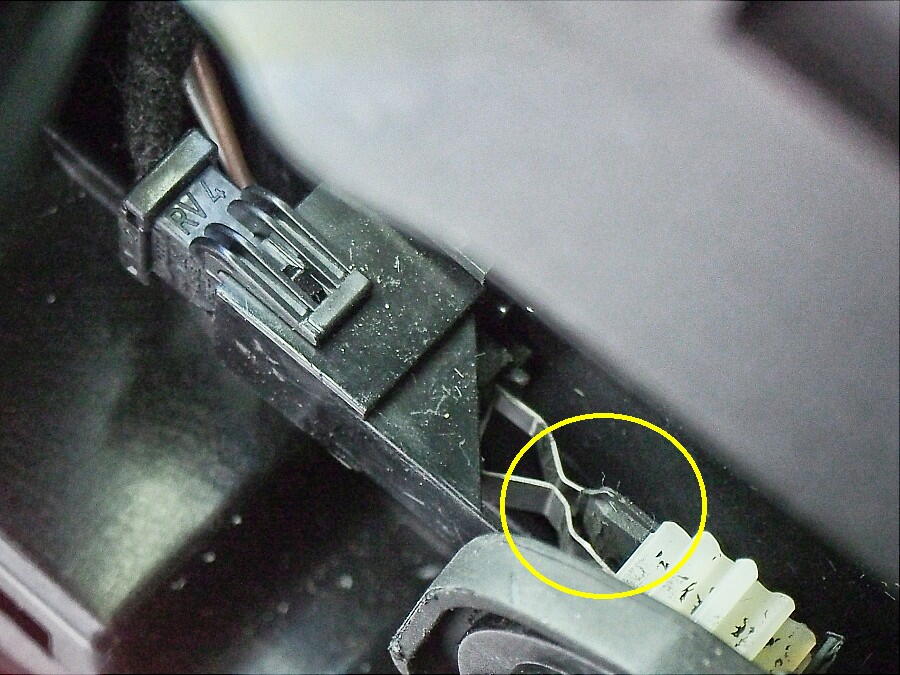 ホルダーから外れると、スイッチの状態は、ONのままとなる( 下写真の左側 )。 トレイが閉まった状態が、下写真の右側。 指先を差し入れているのだが、電極が離れてOFFとなる。ホルダーに嵌っていれば、トレイが閉まると電極間に絶縁板が嵌る構造。 ( 1個飛ばして次の写真 ) 問題なのは、電極が ” 剥き出し状態 ” で有る事。 このスイッチには、グローブボックス内の電球と、アッシュトレイ内の電球に 供給する電流が流れる。 電球のワット数を見てはいないのだが、各電球5(W)とすると 0.8(A)も流れる。 兎にも角にも、絶縁処理をしていないスイッチを使用している事自体が、常識を逸している。