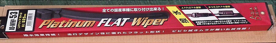 | ワイパーは、購入時に新品に交換してもらっていたのだが、助手席側のラバーが一部変形していて、掻き斑が出る。 また、端が30mm程ウィンドー面から浮いている。 ちょっと長い様なので、交換することにした。通常のBOSCH製も良いが、高さが有る。 この為、ワイパーい隠れてボディの左端が見えない。 エアロタイプであれば、低く抑えられる筈。 今時、ピンキリで色々と選べるしね。 この部品自体には、耐久性を求めないので、安い物を注文した。