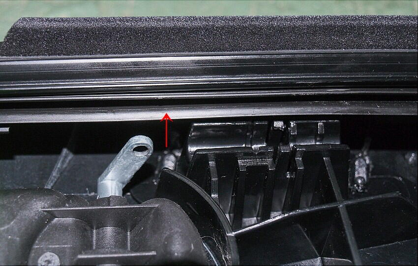 この部品の形状は、V字型なので、開口側を指を押し当てて押し広げる。そして、ドアに嵌る面にはグリースを塗布 して組み入れた。 カッチリと嵌り、動く様子は無い。たったこれだけで、異音は無くなった。
