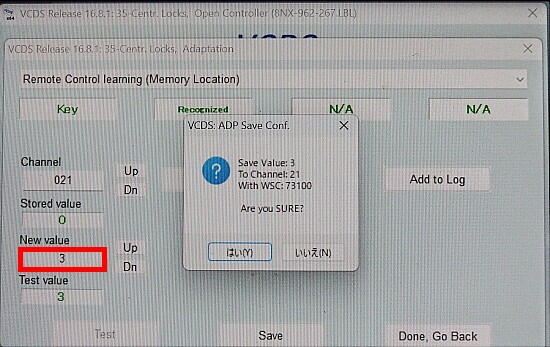New valueに、3を設定して、画面下中央の Save をクリックする。ここで、画面中央に、はい/いいえ が出て