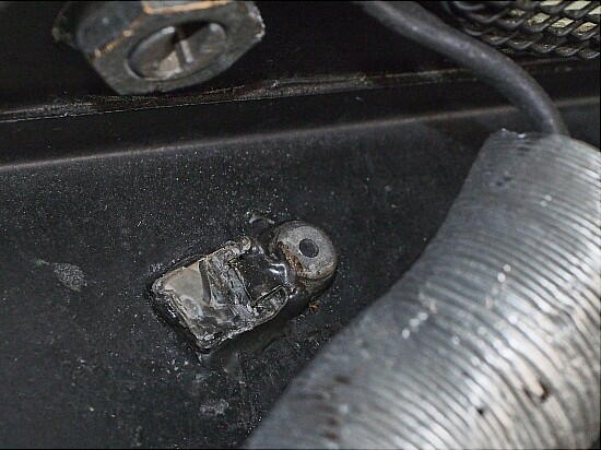 | エリを2001年に購入して、一年も経たず折れた固定台。 面倒なので、JBウェルドで接着していたが、何度 接着しても、エキマニから発生する熱で取れてしまう。懲りもせず接着を繰り返していたが、流石に根治が必要と思った。 折れているのは、エキマニに近い( アンテナベース側 )所で、下側は、未だに大丈夫そうだ。
