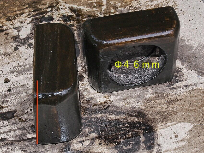 スピーカの外径 Φ46mm きっちりで、穴を開ける。 スピーカーを耳元に近づけたいので、背面は傾斜を付けカット。 後は、塗装 2回、ニス 1回が下の状態。 ニスは乾くまで最低でも半日かかる。 乾燥を待って#320で研磨した後 2回目のニス塗装で終了となる。 待つ時間が辛抱溜まらん状態になるが、待つしかない。