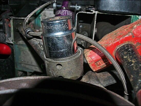 いずれにしても、この時点でやる気が失せた。 さて、元に戻すには ....... ボールジョイントのシャフトを固定しない限り、ナットは空回りするだけ。 シャフトをマウントに打ち込むしかない。 36mmのソケットが丁度合うので、ハンマーで叩き込んだ。 これで、ナットを回す事が出来る。