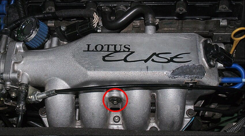 吸気温度なので、エンジンからの熱伝導を余り受けず、ブローバイガスの影響も受けにくい場所がベスト。 となると、スロットル部しかない。 私の車は、IACVの吸気をスロットル上部(バタフライバルブの吸気前側)からバイパスさせたパイプから吸う オリジナルの仕様ではない。なので現状は、その口はメクラ栓で塞いでいる。ただ、その口の内径は、Φ12mm。 IATの雄ネジ外径が、Φ10mmなので余裕は2mmしかない。 そこに雌ネジを切らねばならない訳か。