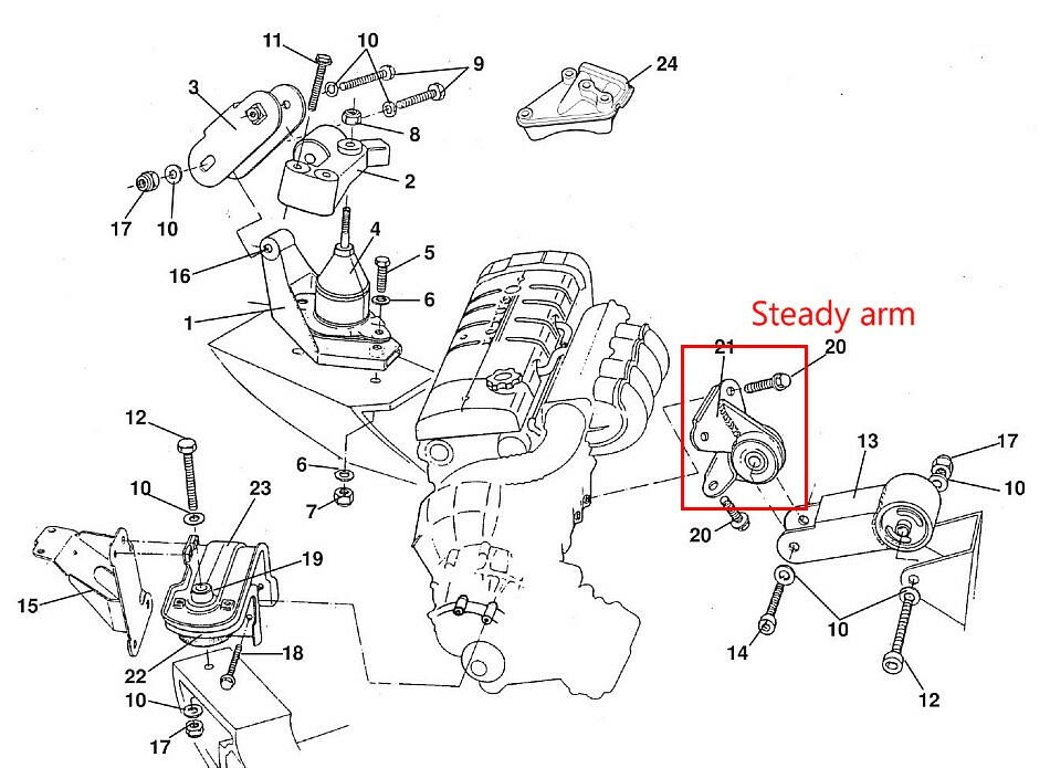 エンジンマウント関連の最後は、エンジン側のSteady armのブッシュを交換する。