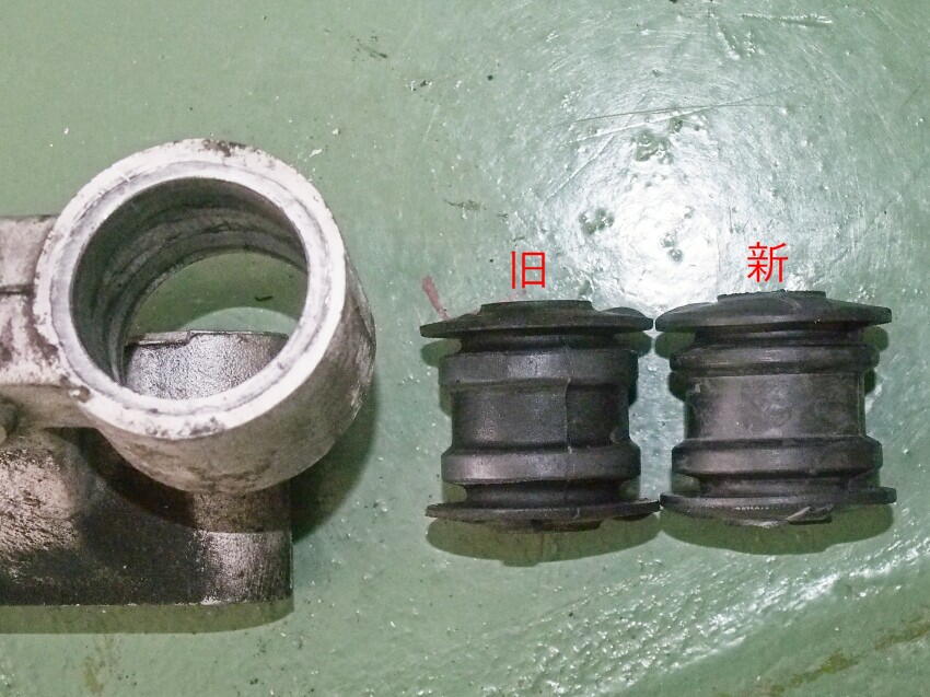 アッパーマウントのブッシュは、手で押し出せる状態まで痩せていた。