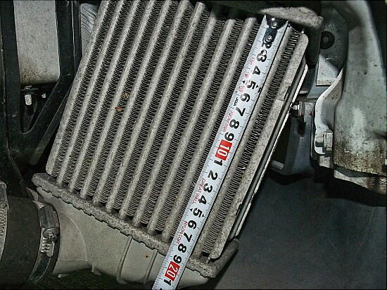| 街乗り後のアイドリング時、インマニの温度を測定すると、90℃ぐらいあり、可成り熱い。 そこで、インタークーラーをファンで冷却する事にした。 尚 ファンは、プル型で使用する。 コアサイズは、180×180mmなので、ファンの直径は7インチが合致する。webで探すが、7インチと言っても 207mmとか、計算が出来ない輩が販売する商品のみ。
