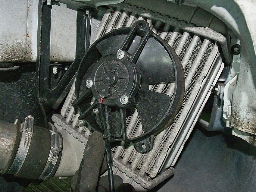 シュラウドに、ファンを取り付ける。固定は、アルミ板(t=1mm)を、L字に加工してボルト止め。