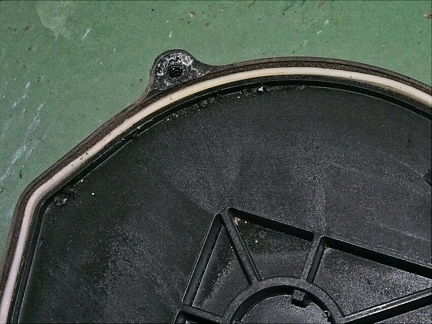 洗浄の際、気が付いたのが、底部の蓋を叩くとパタパタと音がした。分解して内部を確認すると、蓋周辺のシーリングの劣化で 一部隙間が出来ていた(蓋内部周辺に、ダストを確認した)。これは、組み立てる際、シリコングリースを塗布すれば解消する。