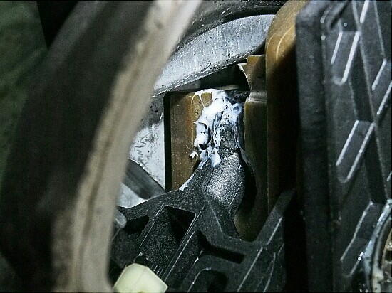 クラッチリリースレバーを確認すると、黒色化し固形化したグリースが残っていたので、拭き取った。