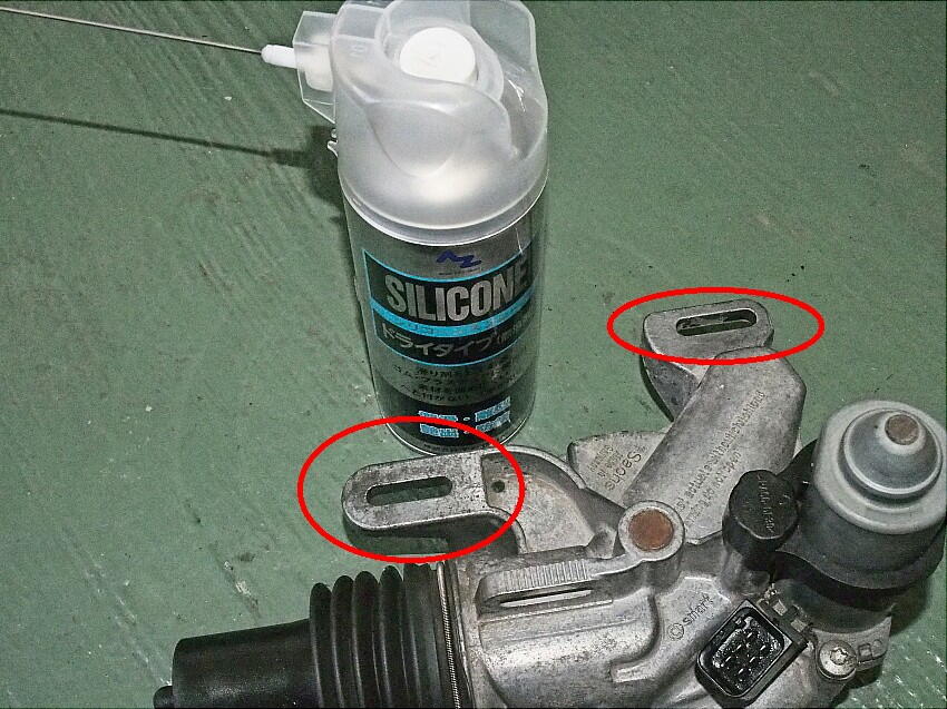 取付に掛かる前に、スライドさせる面にドライシリコンを吹き付けて置く。これで、アクチュエーターのスライドが滑らかになり プランジャーとクラッチリリースレバーが、当たったかどうかを明確に知る事が出来る。