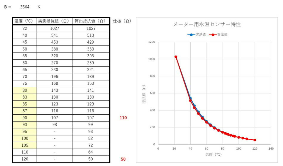 水温センサーの特性と、CPUが読みだす回路を載せて置く。一所にまとめて置かないと、忘れる。