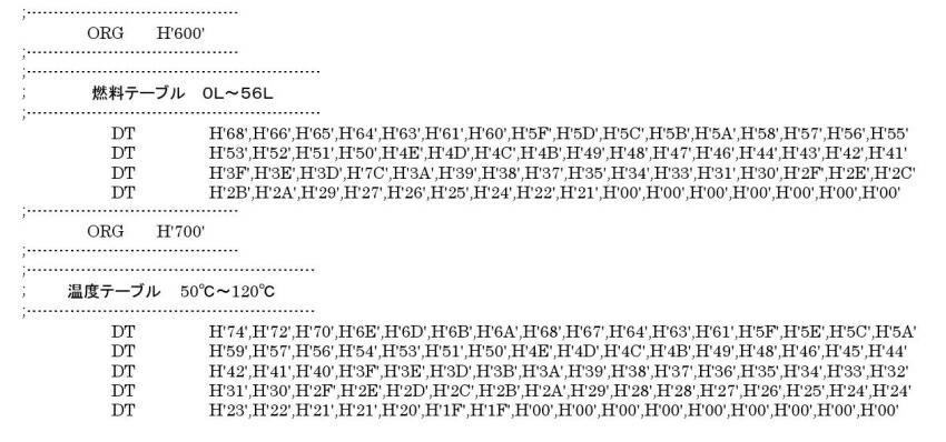 下は、計算結果から求めた結果となる。数値は、Hexで示している。