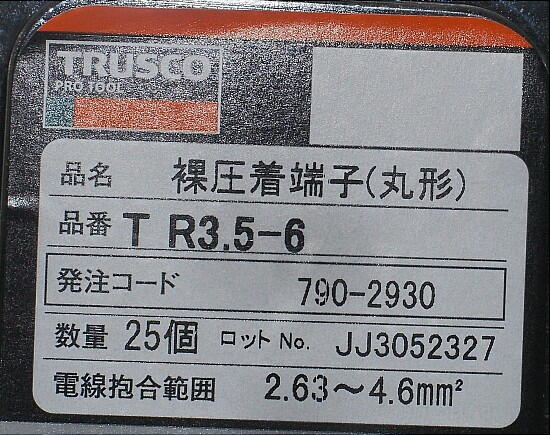 さて、新たにGND線を作成する。 ケーブルは、AWG12を使用し、丸端子は、R3.5−6を使用した。 コネクタピンは、単体では入手が難しいので、カプラー 一式を、webで購入。