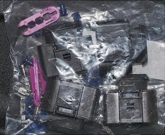 抜いたコネクタピンを見ると解ると思うが、上下に引っ掛かりの爪が有る。これを、上の工具を押し込んで、爪を 下げた後、引き抜く。