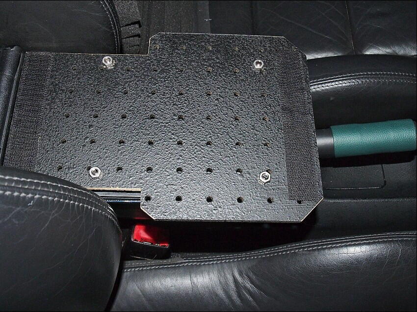 アームレストの前後位置は、一度合わせば、動かす事も無いだろうと、4mm厚のアルミ板を曲げて穴を開けて、L字 アングルを作成。これを、後端部にネジ止めした。 若干スライドさせる為の長孔加工をしても良いが、剛性低下に 繋がるので止めた。