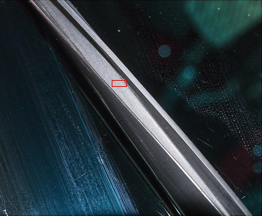 余分なシーリングを除去する際、気を付ける事は、Windscreen Rubber Finisherの形状を良く見る事。 ガラスが嵌る部分( 下写真の四角 )の両脇にリブが立っている。 この部分にシーリング剤が残って固まると、Windscreen Rubber Finisherは、嵌らなくなる。