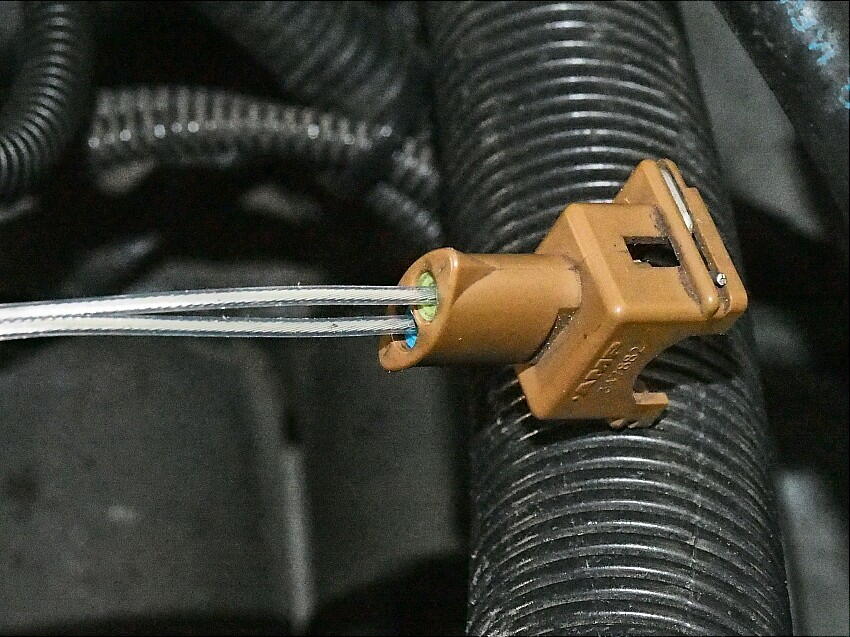 | 表題のコネクタピンの交換と、配線の延長を実施した。 以前、配線の延長を10cm程していたが、エンジンルーム内の 配線全体を動かした事で、現状は ピンピンに張っている状態。 これでは、コネクタ端で切断の恐れが有る。 一方、コネクタピンの状態は、咬み口が ひん曲がっており、接触状態が良くない。コネクタ本体も変えた方が良さそうだが 手に入るかどうか .....