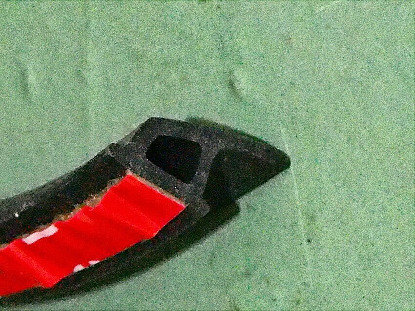 ゴム板を注文したつもりでいたが、届いた物はポリエチレンの板だった。まあ、耐久性が有るので問題はない。 この素材をカットして使用するつもりだが、カットする部分は赤枠ぐらいかと思う。