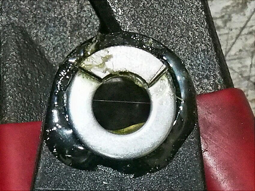 ブーツバンドを、目一杯寄せて( 車輪速センサーから離して )締め付けたのだが、それでも接触していた。 ブーツに付属していたブーツバンドの幅が広かったのも原因だが、車輪速センサー その物自体が根本原因だ。