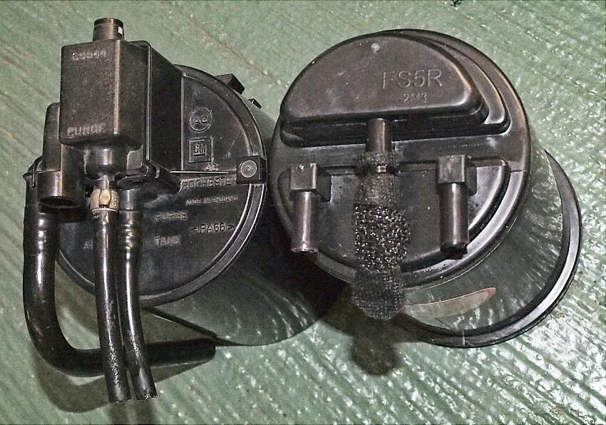キャニスターの全体寸法は、ほぼ同じ。 ただ、電磁バルブは外付けになる。