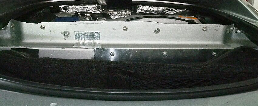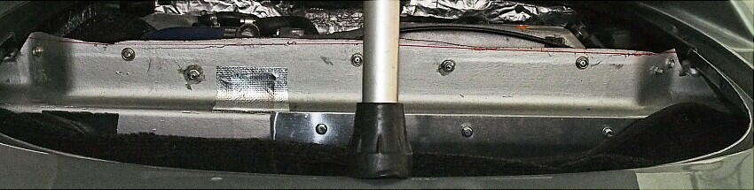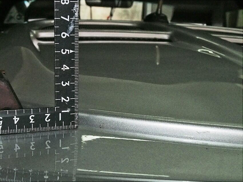 また、トランクの前側のモールの厚みも原因の一つかと思い、エンジンフード裏を見ると、確かに当たっている。