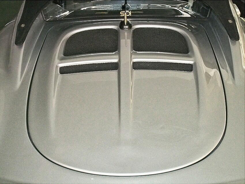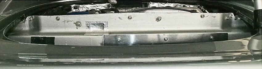 | エンジンマウントを交換後に浮き上がったエンジンフード。主原因は、エンジンマウントが5mm高さが増した事だ。 対策で、エンジンフード下とインマニの干渉部を削っているが、削る範囲が少ない為、未だ干渉している。これに因って エンジンフードの中央から左側に掛けて浮いている。これが、非常に見苦しい。