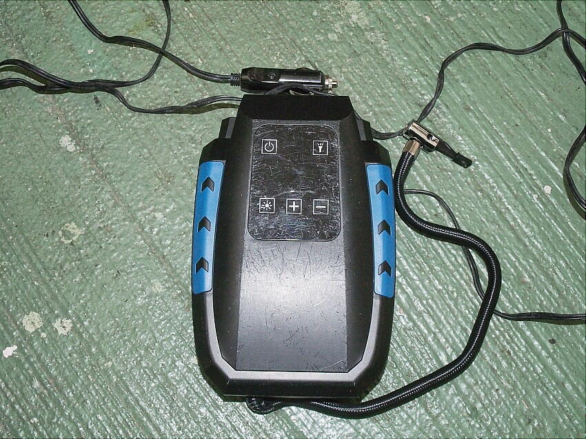 | 気温が可成り下がったので、空気圧をチェックしてみた所、3台共 0.3〜0.4 (kgf/cm2)程低下していた。 見た目でも、タイヤが潰れている状態だった。 そこで、インフレーターで入れようとしたのだが ....... まずは、空気圧の設定をして、いざ入れようと 動作ON。 その途端、表示される圧力は、4 (kgf/cm2)以上となり、動作停止。 再度 動作ONにするが、数秒動いて停止する始末。 これを何十回か繰り返していると、正常に動き出した。 どうやら、ポンプが温まると動作する様だ。 設定した空気圧になると自動停止するのだが、ゲージで計ると、+0.2(kgf/cm2)と なってしまう。 海外製は使い物にならん!