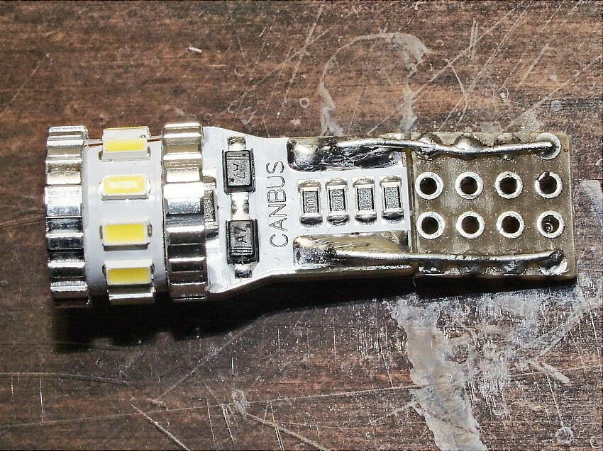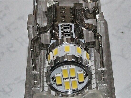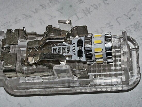 | 現在は、オリジナルのT10型の電球が2個付いている。やはり、暗い。 T10型のLEDに変える為、注文したのだが ....... 寸法が、違う。