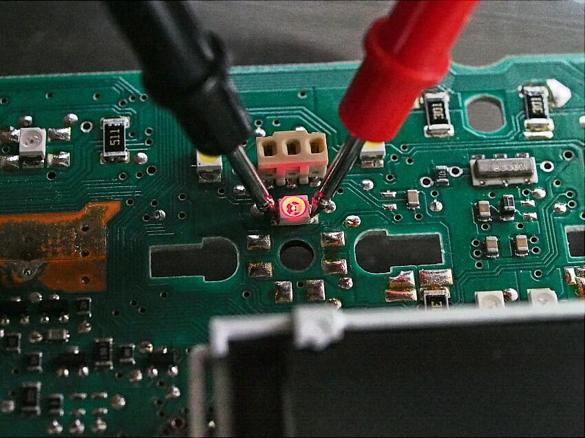 フランス製のメーターに、又しても不具合が発生した。今回の不具合は、液温計の針 照明用のLEDが点灯していない。