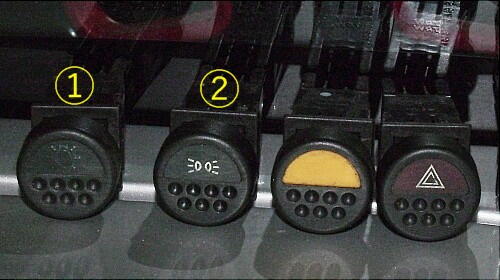 コネクタは、緑 : ヘッドライト 、 黄 : サイドライト 、 青 : フォグ 、 黒 : ハザード となる。