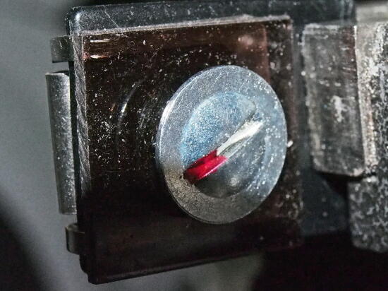ピンを入れて、これ以上捻れない状態まで回した後さらに力を掛けると、クリップが捩れて変形し、ピンの溝に クリップの爪が引っ掛かり、それ以上回らない事が解った。