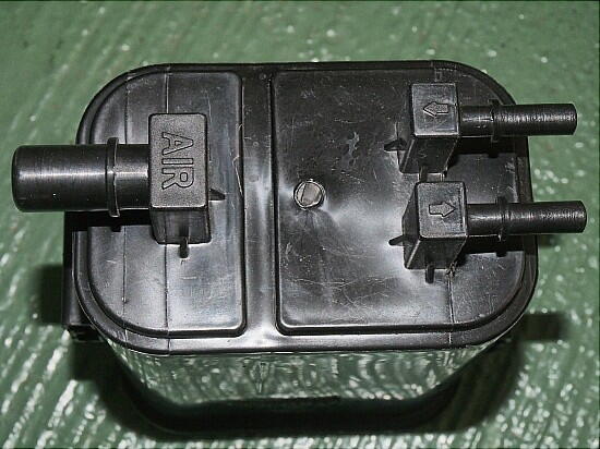 外したキャニスター底部の配管が下。 大気吸入口には、ワンウェイバルブが有る。