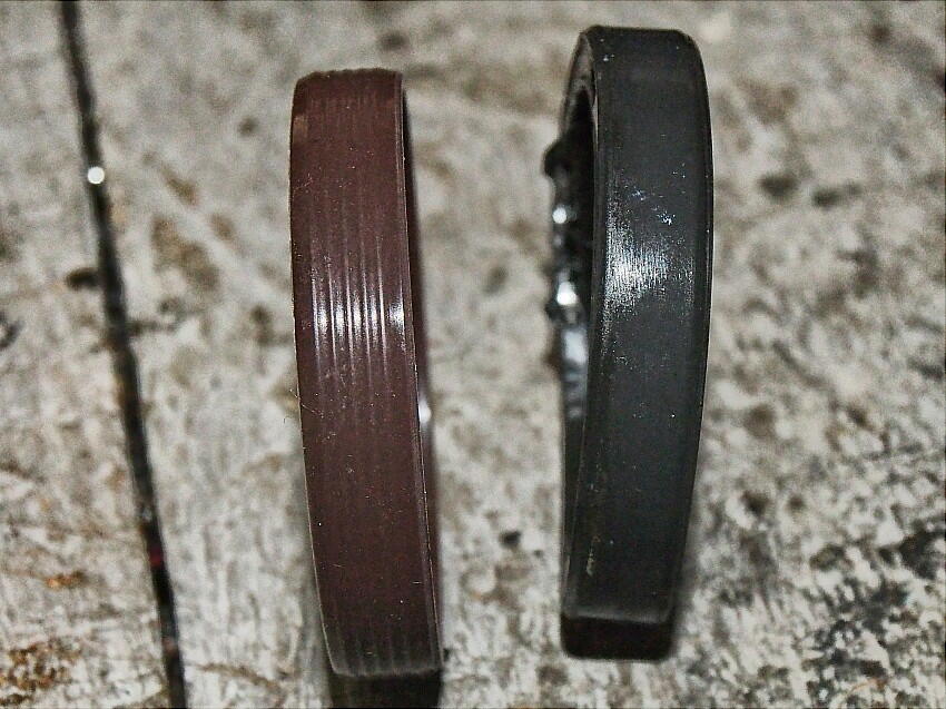 これを差し込み、力を込めて、じわっと引いてみると、取れた ! ここまで、何時間掛かった事か。 外したシールの当たり面を見ると、シャフトと接触していた部分は、擦れて輝きが無い。 また、ゴムも フニャフニャな状態だった。