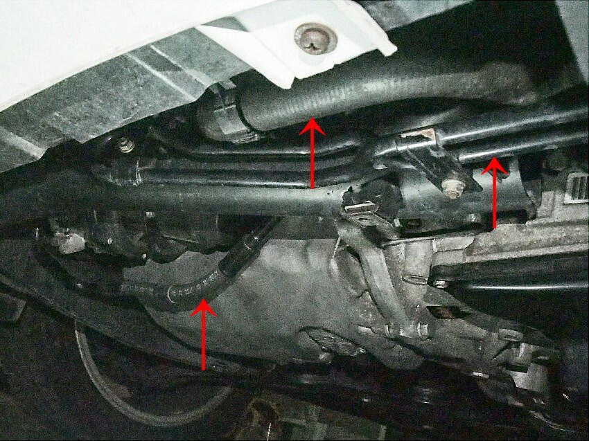 では、アンダーパネルを装着しなければ良いではないかとなる。 そうしたいのは山々なのだが ..... 地面に近い所を、色々と配管が走っている。 これらを保護しなければならない。