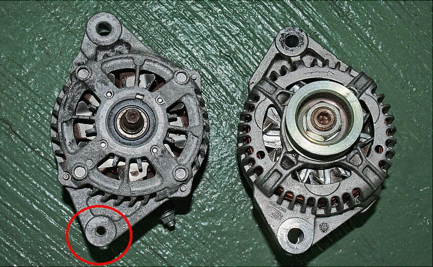 | 寸法面で使えそうなオルタネータを大分前( 5年前 )に手に入れていた。 当初は、このオルタを使って風力発電のシステムを作ろうか 企んでいたが、 色々と忙しく、全く設計が出来ていない。 最近エリのオルタが壊れたので、久々に引っ張り出した。 これも多少加工すれば、エリで使えると思われる。